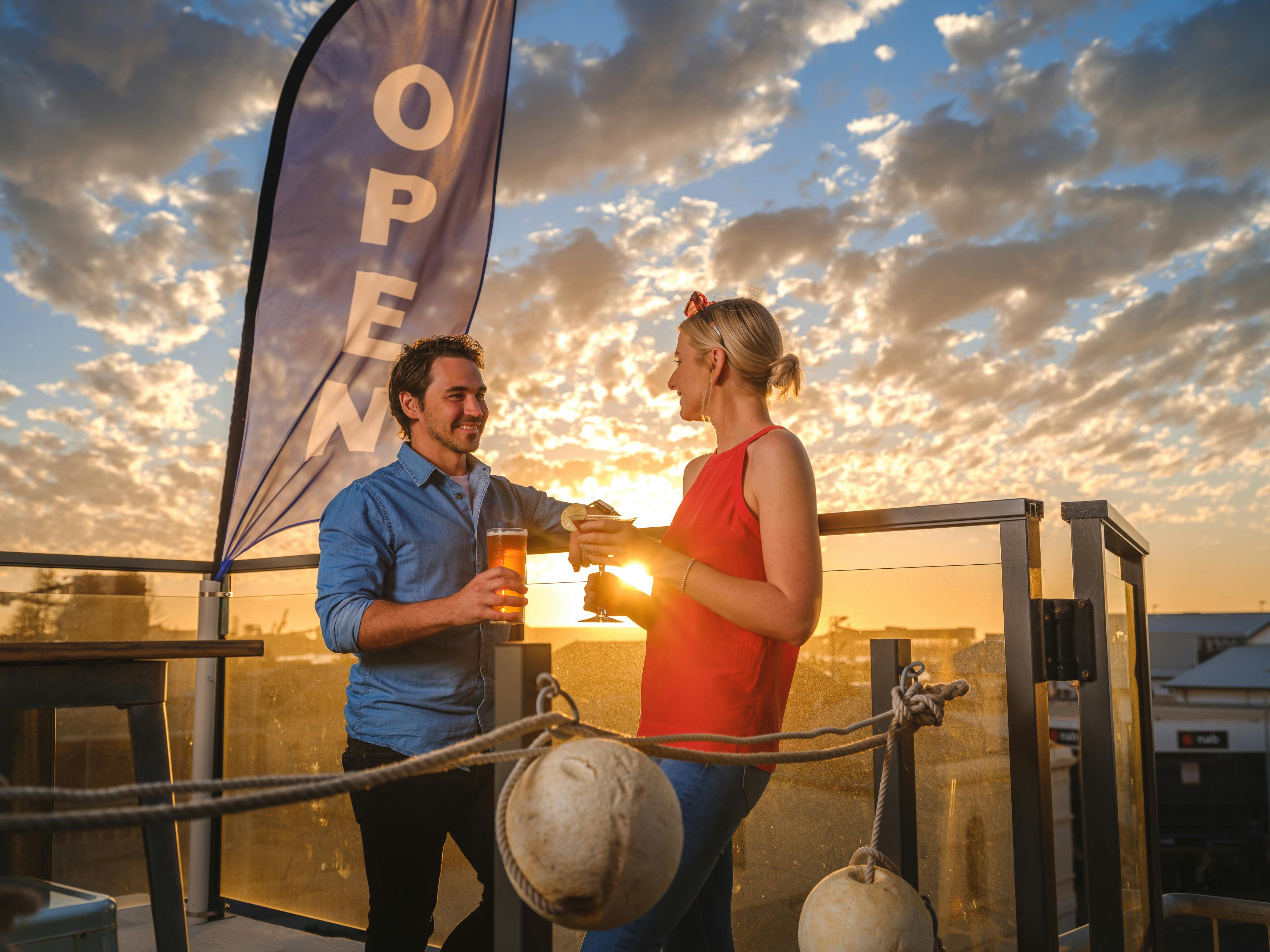 Located on the 3rd Floor, Geraldton’s only rooftop bar celebrates the magnificent ocean views and is perfect for some delicious food, a refreshing cocktail or an ice cold tap beer overlooking the sunset.